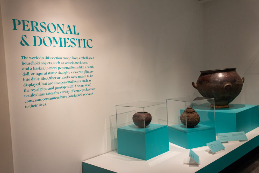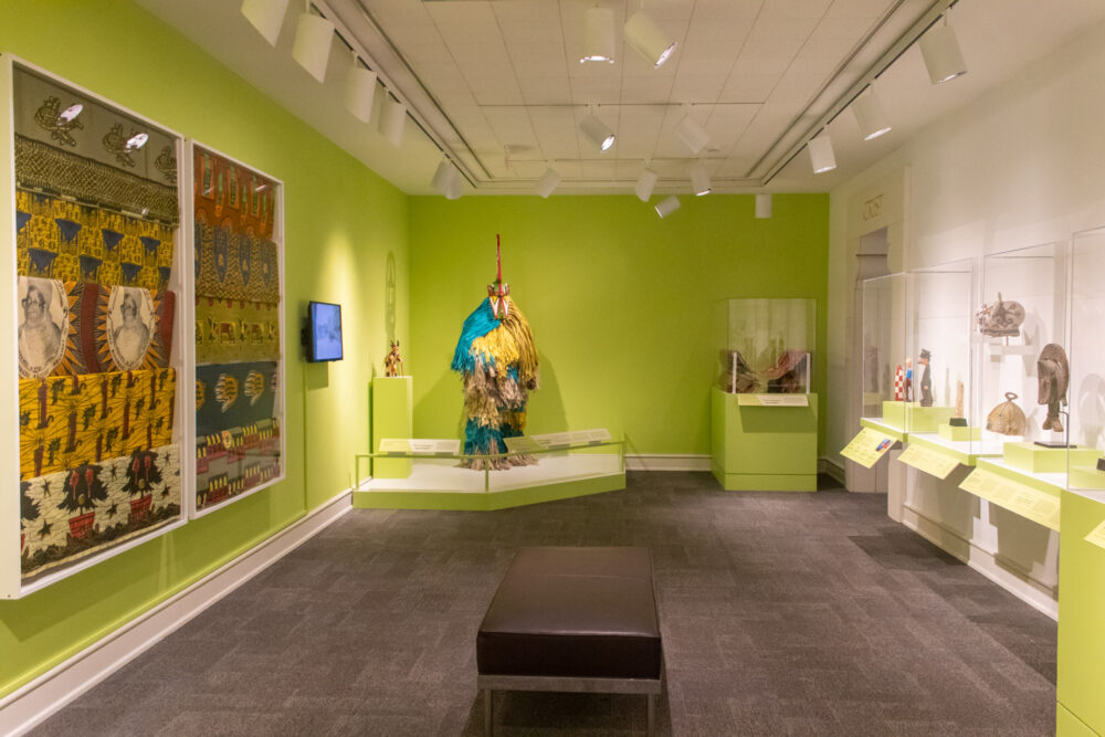 This exhibition presents African artworks from across the continent, focusing on three major themes: Global Connections, Personal and Domestic Objects, and Ceremonial Masquerade. All of the themes intersect so that an artwork in the Ceremonial gallery might just as rightfully be displayed in the Global Connections space. These sections frame the artworks in ways that promote an understanding of their roles in society while recognizing the variety of styles, materials, sizes, purposes, and types of artworks that have been produced on the continent since the late 19th century.