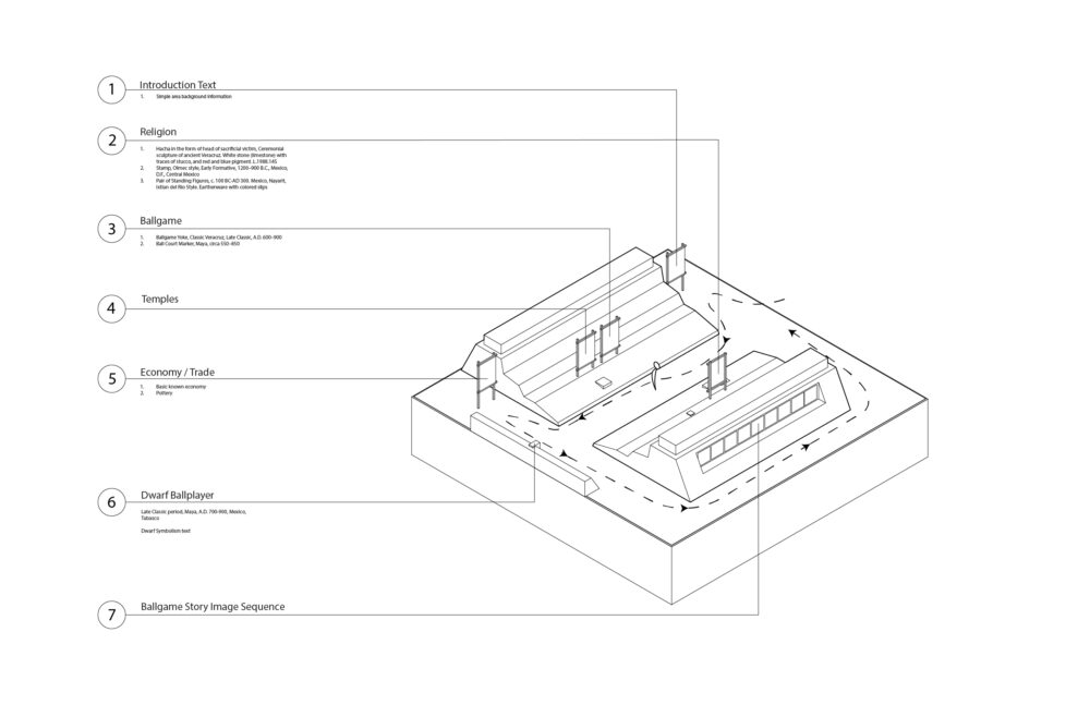This project proposal studies the historical and societal ties of ceramic craftsmanship within Recuay culture. Through in depth research, this team has developed a series on 3D renders, axonometric drawings, and video walkthrough of a design that celebrates the process and history behind Recauy ceramics. The proposed exhibit takes the shape of the Callejón de Huaylas, where visitors are able to physically follow the land in which the Recuay lived. Throughout this “valley” are smaller rooms that resemble residential buildings within the ancient civilization of Yaynu, each highlighting specific information pertaining to the Recuay and their artform.