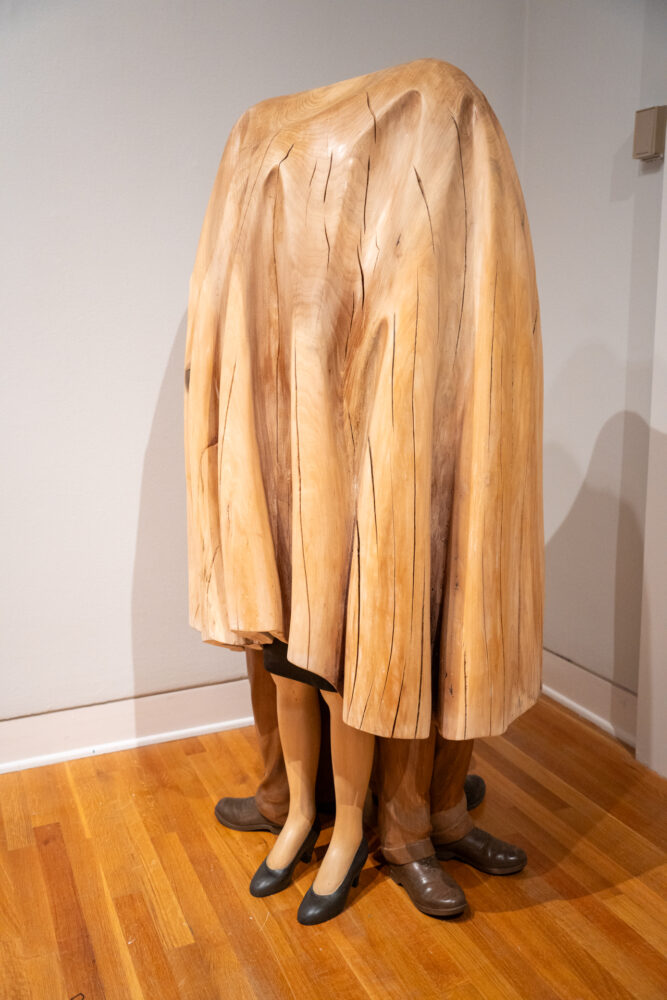 “Cover Up” by artist Bob Trotman is made of wood, tempera, and wax.